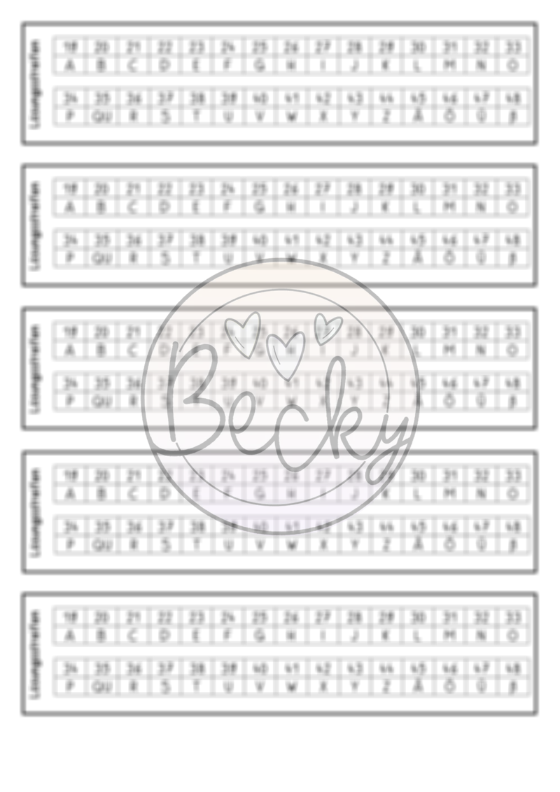 Am Ende „übersetzen“ sie die Nummern mit Hilfe des Lösungsstreifens in Buchstaben und erhalten von unten nach oben gelesen ein Lösungswort.