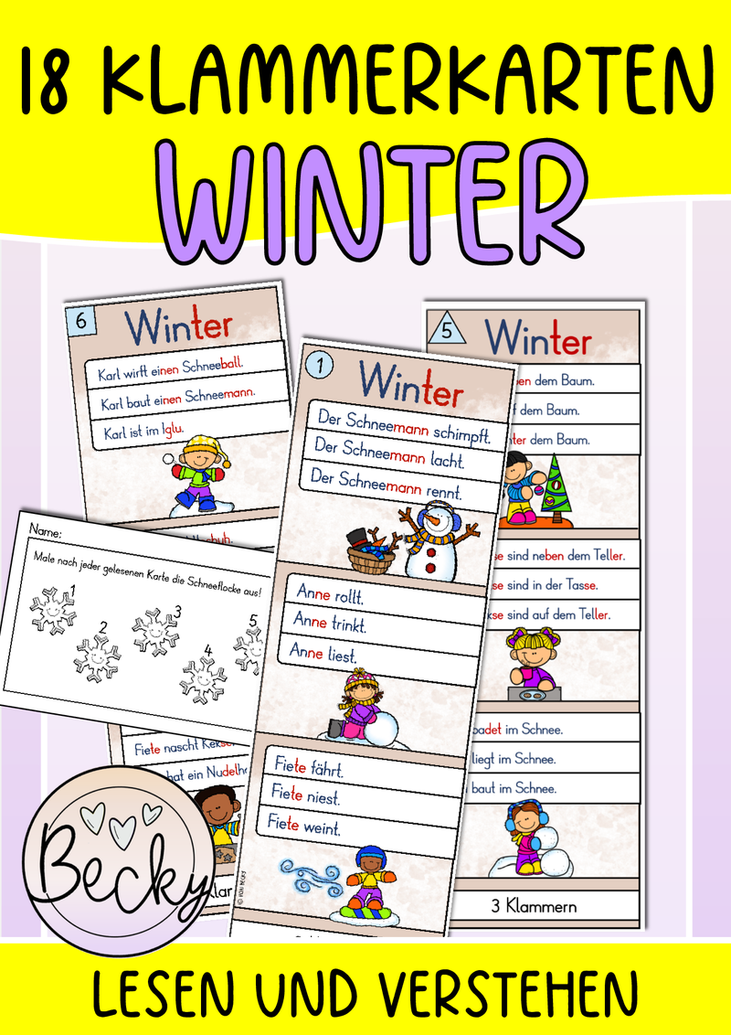 Lesestreifen Winter (Klammerkarten – Klasse 1 und 2)